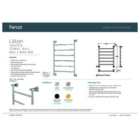 Fienza Lillian Heated Towel Rail 600 x 800mm Chrome 8106080