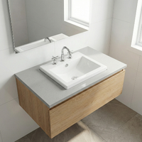 - A semi-inset cut-out is required in the vanity top. Use the physical basin as a template.