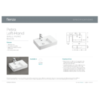 Fienza Petra Left Hand Wall Hung Basin Gloss White One Tap Hole 600mm x 420mm RB2223L