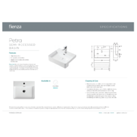 Installation Note: Due to the nature of ceramic as a material, small variations in size and shape do occur. Ensure that the measurements of the purchased basin are checked physically, BEFORE cutting any counter-top. Specification drawings are a GUIDE ONLY. Fienza will not be held liable for any errors made by external parties when cutting counter-tops.