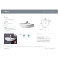 Fienza RAK Compact 550 Wall Hung Basin Gloss White One Tap Hole 550mm x 410mm 601201W