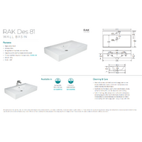 Fienza RAK DES 81 Wall Hung Basin No Tap Hole 810mm x 460mm White 08100AWHA