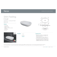 Fienza RAK Feeling Oval Ceramic Above Counter Basin White No Tap Hole 550mm x 350mm 606100W