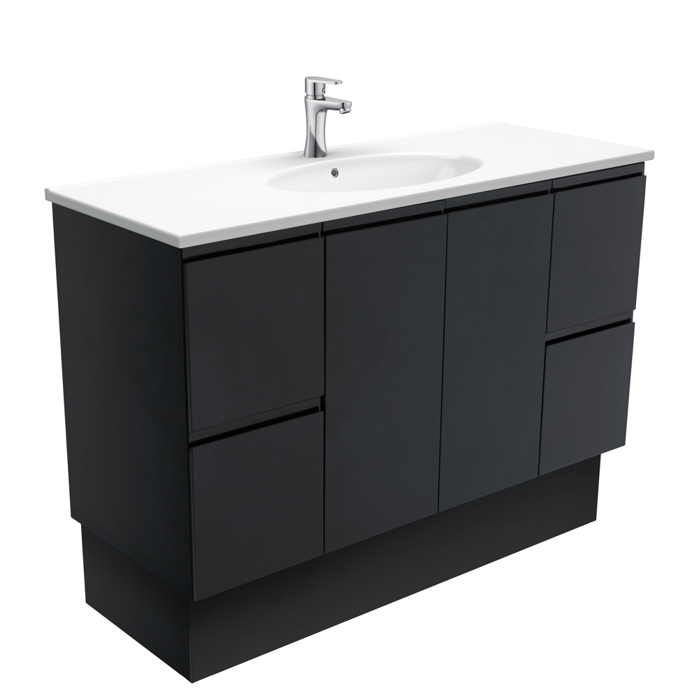 Fienza Rotondo Fingerpull 1200 Vanity on Kickboard Satin Black ROT120ZBK