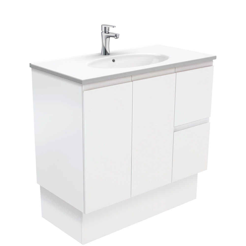 Fienza Rotondo Fingerpull 900 Vanity on Kickboard Satin White ROT90ZKR