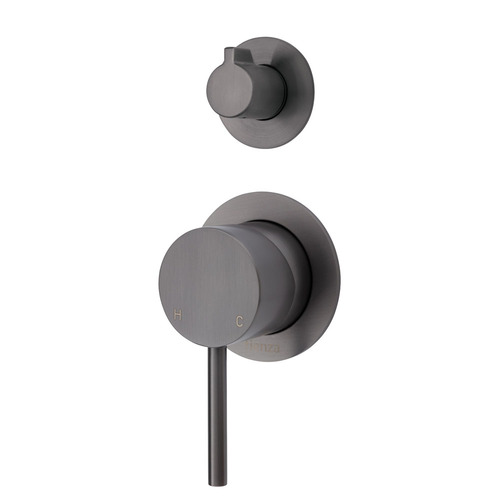 Fienza Shower Wall Diverter Mixer Gun Metal Small Round Plates Bathroom Tap Kaya 228102GM-4-LF