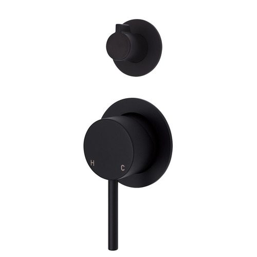 Fienza Shower Wall Diverter Mixer Round Plate Bathroom Tap Matte Black Kaya 228102B-4-LF