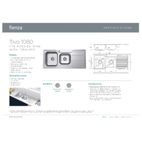 Fienza Tiva 1080 1 & 3/4 Bowl Kitchen Sink with Drainer 19/12 Litres Right Hand Bowl Stainless Steel 68106R