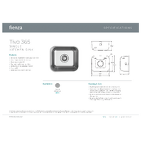 Fienza Tiva 365 Single Bowl Kitchen Sink 16 Litre Stainless Steel 68101