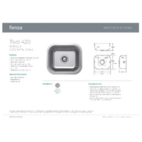 Fienza Tiva 420 Single Bowl Kitchen Sink 20 Litre Stainless Steel 68102