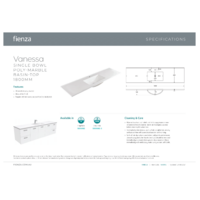 Fienza Vanessa 1800 Single Bowl Poly Marble Vanity Basin Top Gloss White One Tap Holes 1800mm x 460mm 180VANS