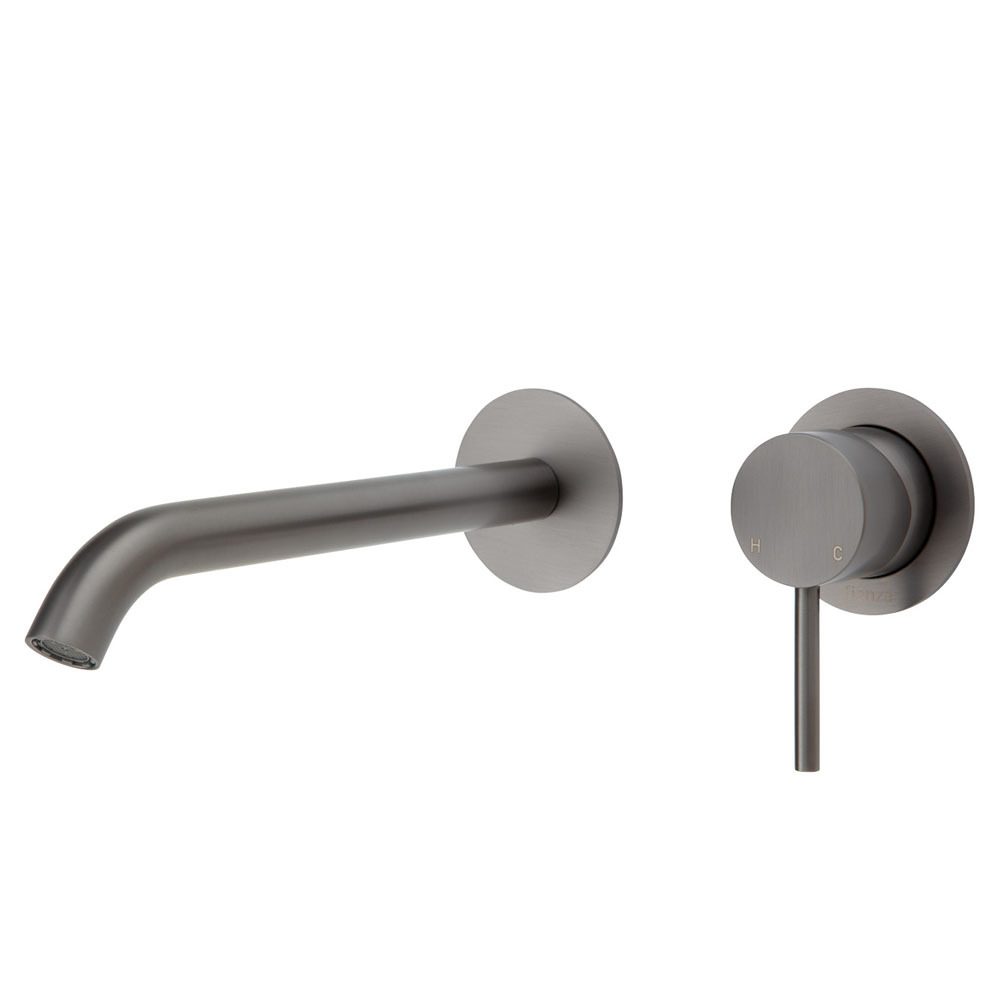 Fienza Wall Basin / Bath Mixer Set Gun Metal Round Plates 200mm Outlet Kaya 228104GM-200-LF