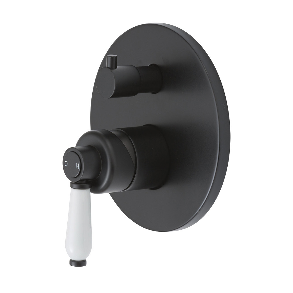 Fienza Wall Mixer Bathroom Shower Tap with Diverter Matt Black Ceramic Handle Eleanor 202102BK