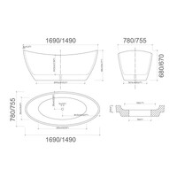 Freestanding Bath Tub 1700mm Bathtub Sanitary-grade acrylic ECT Global Gloss White Bravo BT 281