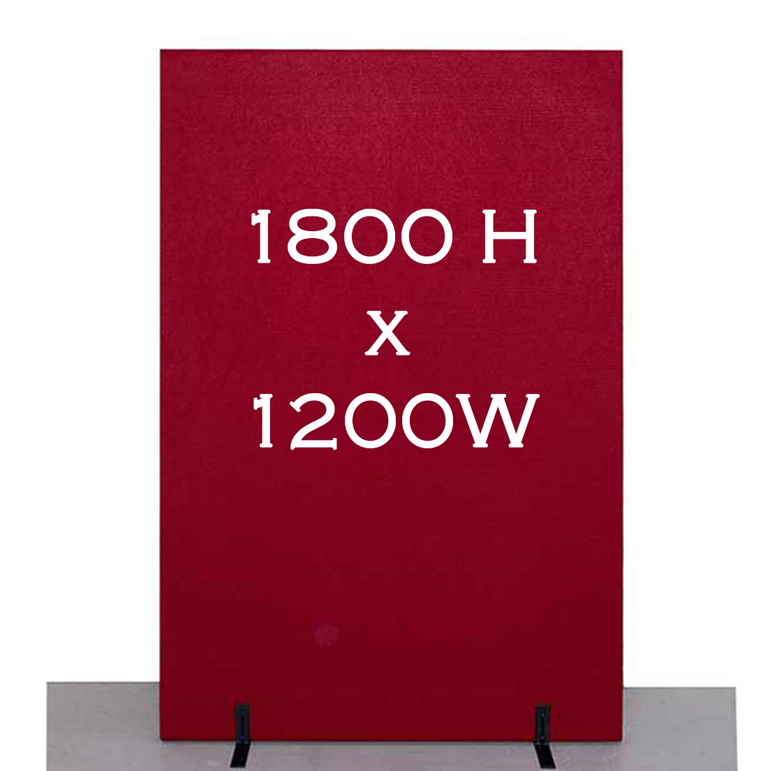 These partitions are 1800mm x 1200mm and are upholstered in charcoal. We can order other colours in but stock the charcoal. They come with two feet so that they can be free standing.