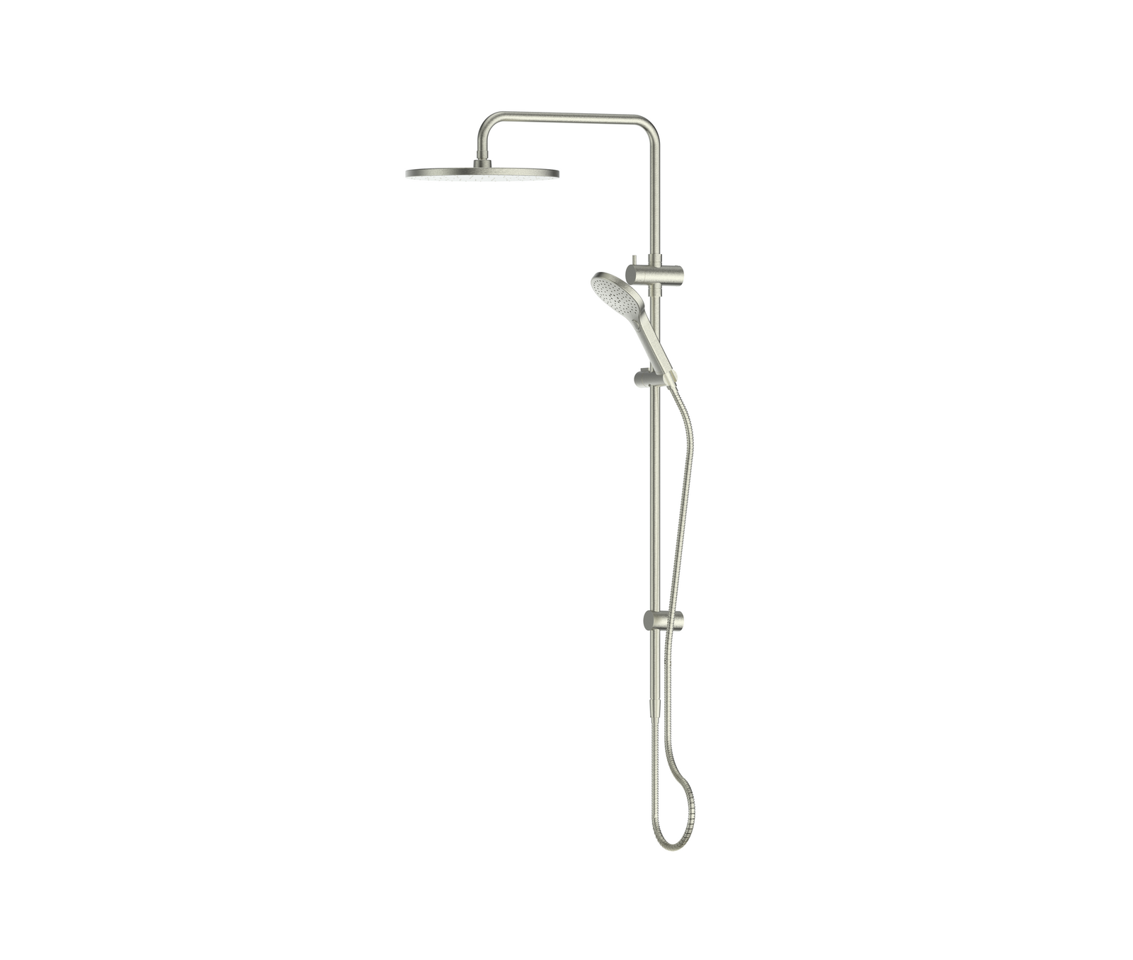 Greens Tapware Overhead Twin Rail Shower Multi Function Brushed Nickel Rocco 18790BN