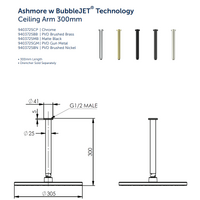 Greens Tapware Ashmore BubbleJet Overhead Ceiling Shower Arm 300mm Brushed Brass 9403724BB