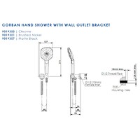 Greens Tapware Bathroom Hand Shower with Wall Bracket Chrome Corban 901930CP