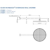 Shower Features 250mm diameter overhead shower, 380mm wall arm