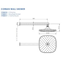 Greens Tapware Bathroom Overhead Wall Shower Single Function Brushed Nickel Corban 193001BN