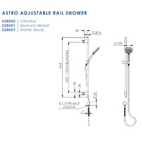 Greens Tapware Bathroom Rail Shower Multi Function Handset Brushed Nickel Astro 52800BN