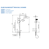 Greens Tapware Gravity Fed Glide RainBoost Twin Rail Shower Low Pressure Brushed Nickel 18290BN