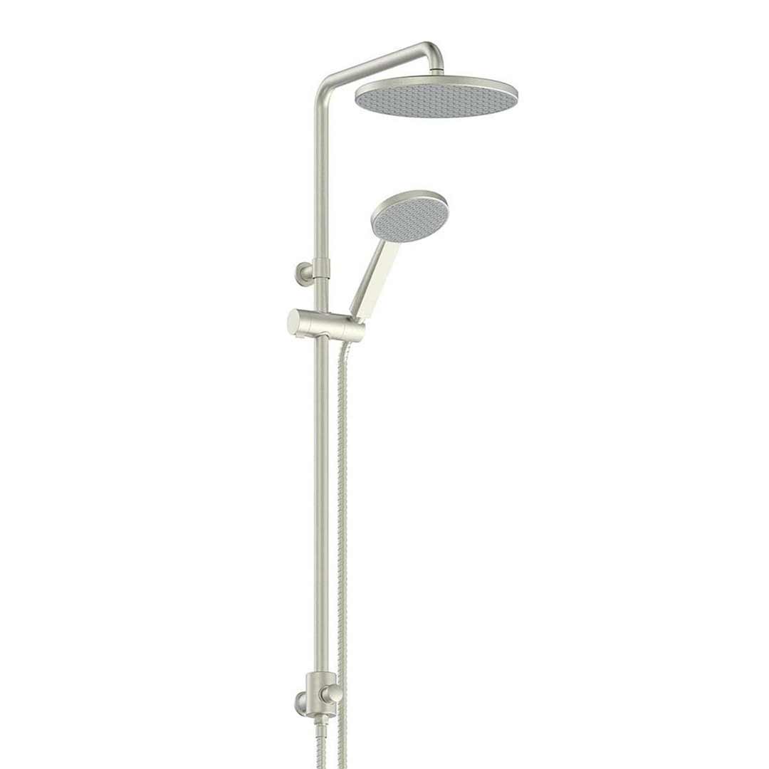 Greens Tapware Overhead Twin Rail Shower Multi Function Brushed Nickel Rocco 18790BN