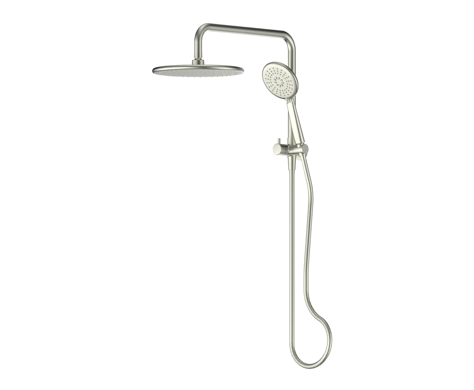 Greens Tapware Rocco Short Overhead Twin Rail Shower Brushed Nickel 18750BN