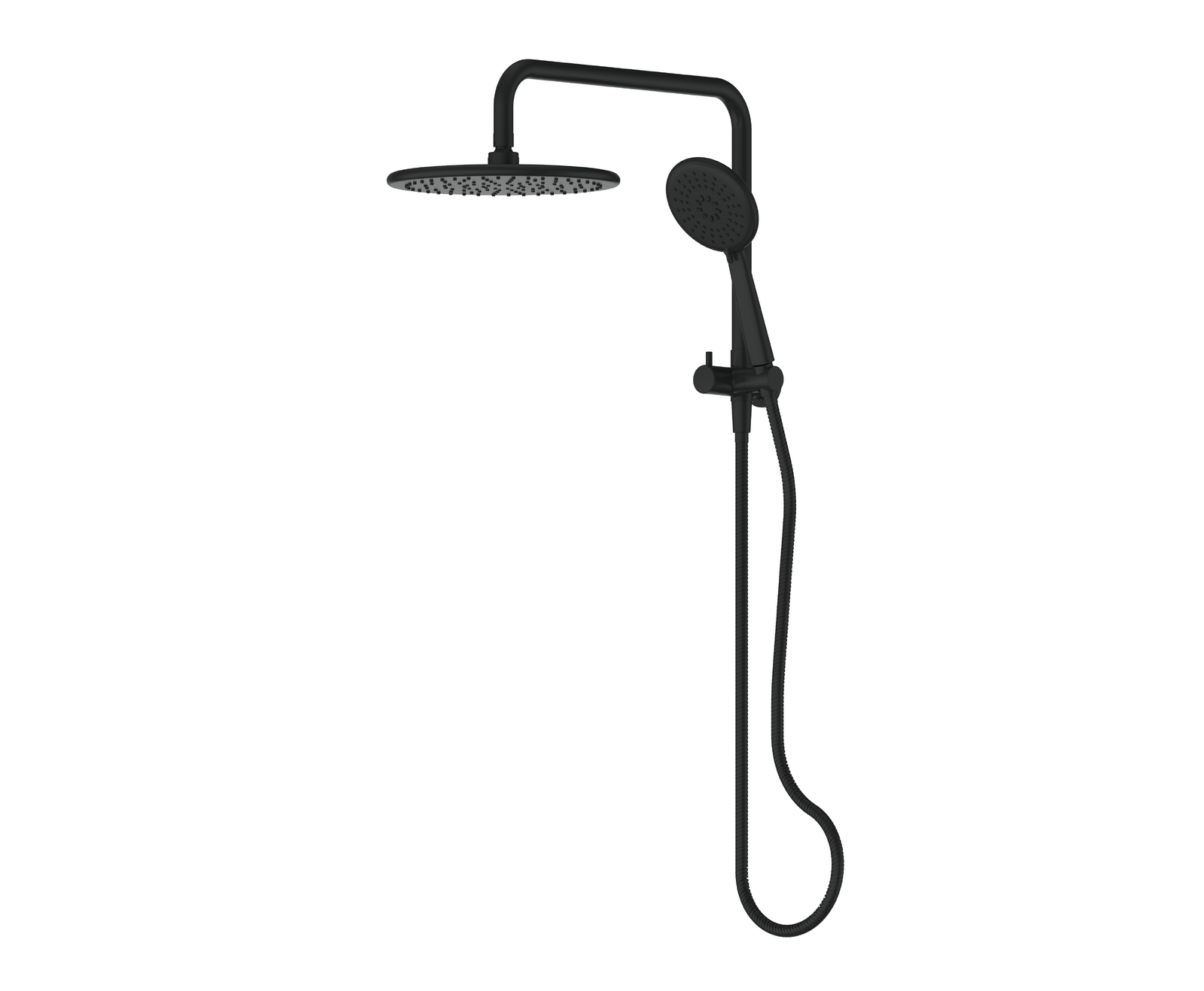 Greens Tapware Rocco Short Overhead Twin Rail Shower Matte Black 18750MB