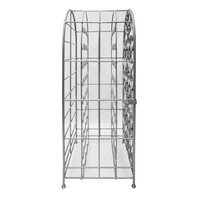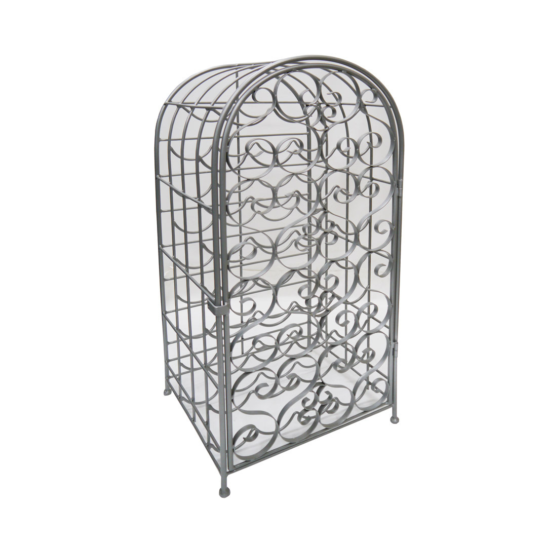 Heavy-duty silver steel construction that holds up to 35 wine bottles horizontally.