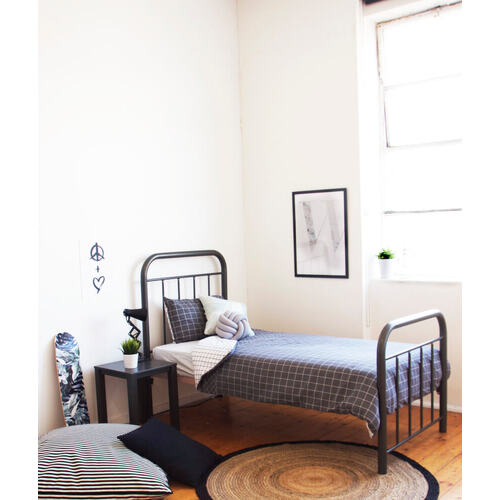 Abigail is our most popular bed and perfectly at home in a kids or adult room. A modern twist on the classic ‘hospital bed’, Abigail is available in Single, King Single, Double and Queen and pictured here in Gunmetal Kinetic.