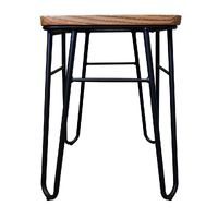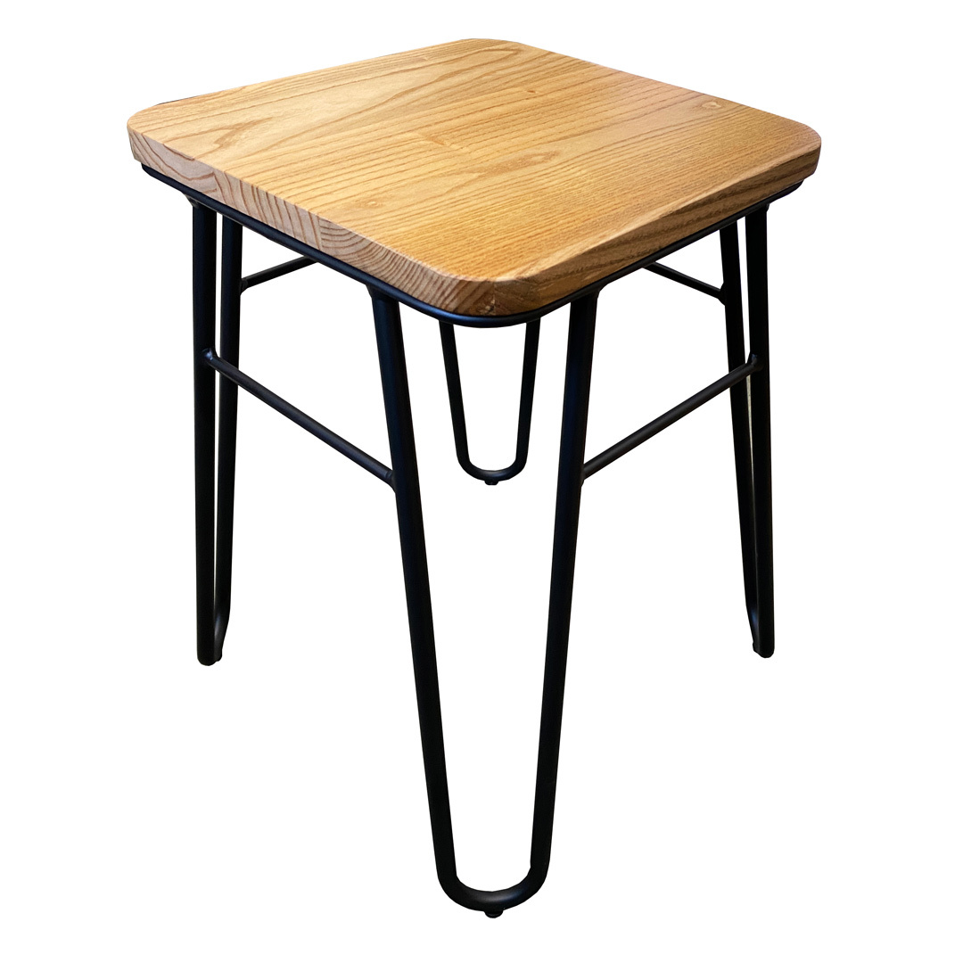 Black metal hairpin tube base with a square reclaimed timber top. A simple yet solid design. Suitable for commercial use. Loop Counter Stool