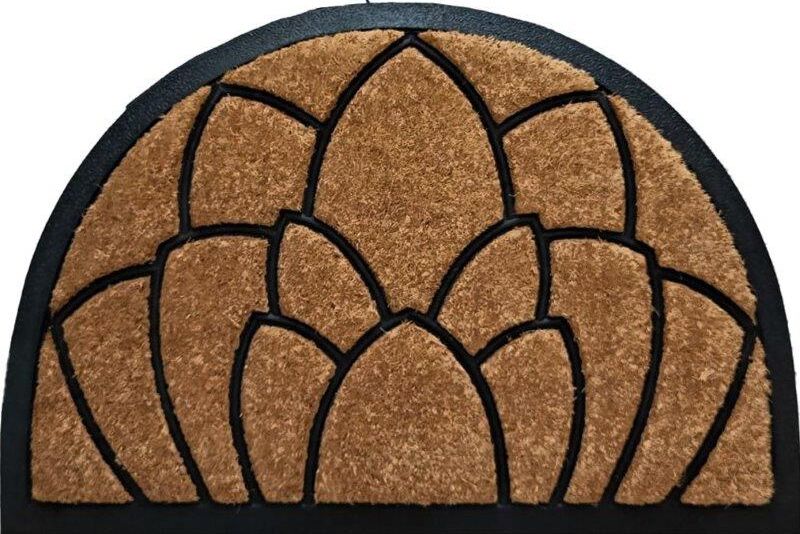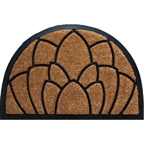 Lotus Embossed Design Doormat Coir Rubber Outdoor Door Mats 40cm x 60cm Half Moon