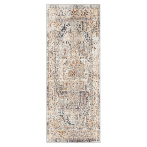 Luna Blue Yellow Traditional Vintage Distressed Floor Hall Runner 80cm x 300cm