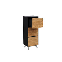 Cabinet with three Timber Veneer filing drawers, matt black 2 pack paint frame, and aluminium feet.