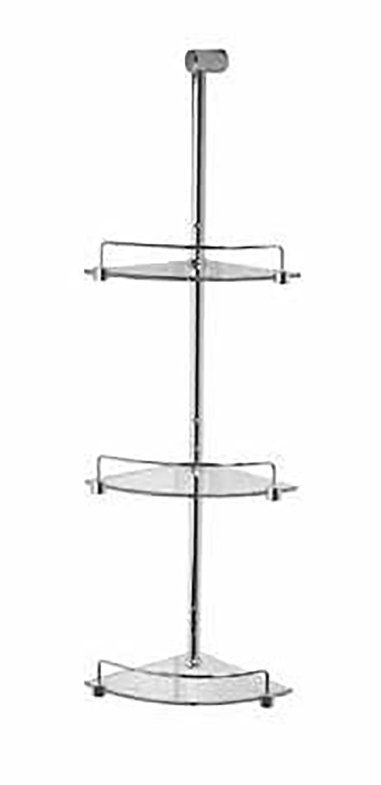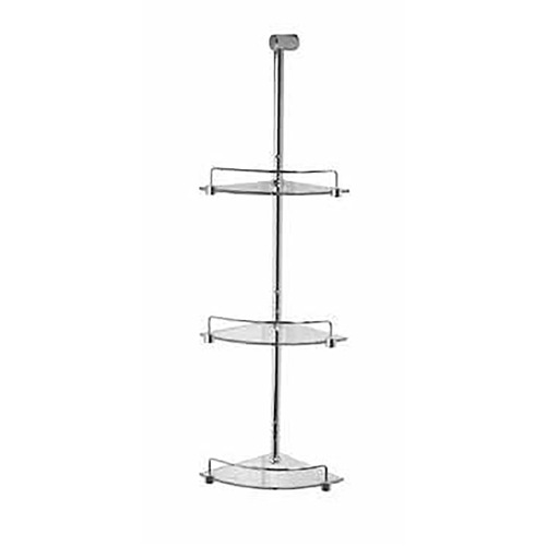 This 3 tier glass shelf can be fixed to the wall within a wet environment. The shelf is glass and the ends are made of brass and finished in chrome to increase the life span and reduce rusting.