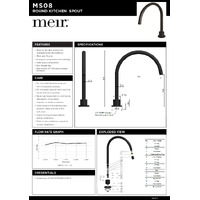 Meir Kitchen Laundry Gooseneck Tap Round High Rise Swivel Hob Spout Matte Black MS08