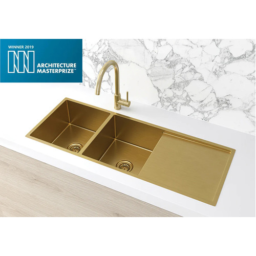 New to our range, this Stainless Steel Double Bowl Kitchen Sink with Drainboard in Brushed Gold combines cutting-edge nanotechnology and an environmentally friendly Brushed PVD coloured finish, which produces a beautiful coating.