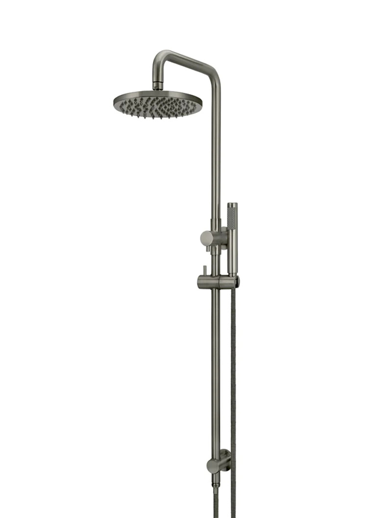 With a simple twist of the in-built diverter; you can switch from the overhead shower to engage the precision shower wand for close-up washing with this stunning PVD Shadow Round Shower Rail.