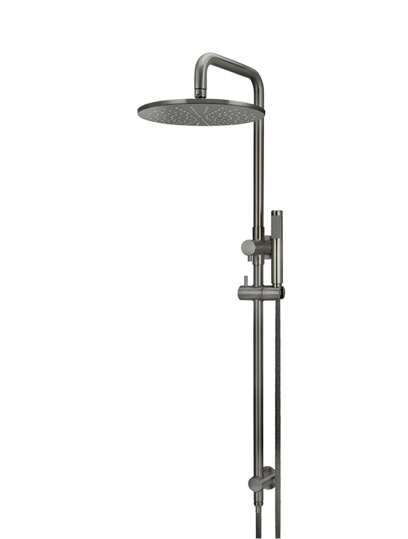With a simple twist of the in-built diverter, you can switch from the overhead shower to engage the precision shower wand for close-up washing with this stunning Shadow Round Shower Rail.
