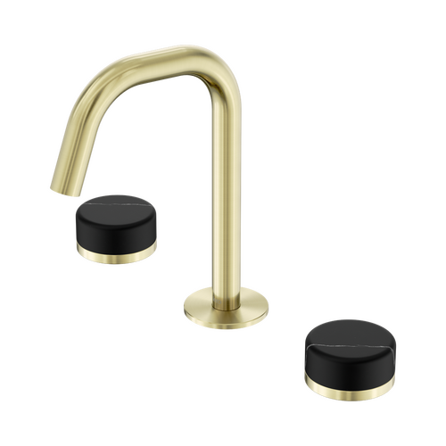 Nero Tapware Serenity Basin Edge Spout w Marquina Handle Brushed Gold 24D119BG