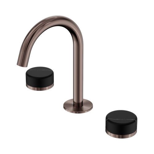 Nero Tapware Serenity Progressive Basin Arc Spout w Black Handle Brushed Bronze 24D117BZ