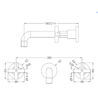 Nero Tapware X Plus Wall Basin Set 215mm Spout Brushed Gold NR201607aBG