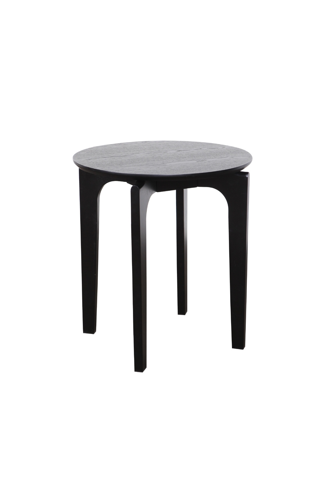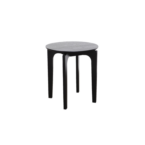 Nordic 500mm Round Lamp Table Retro MDF Top with Ash Veneer Rubberwood Timber Legs Black