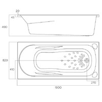 Oceano 265L Bath Tub 1800 x 820 Inset Bathtub Sanitary Grade Acrylic White Civic CB1800