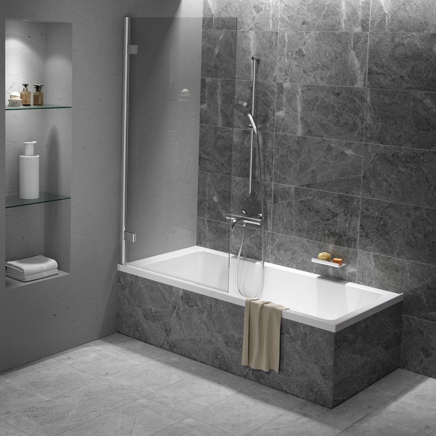 Oceano Bath Shower Screen 1600 x 900 Hinged Revisable Chrome Finish Urban Bath Panel URBS900C
