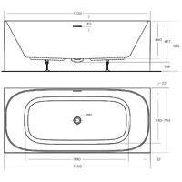 Oceano Bath Tub 1700 Free Standing Acrylic Bathtub Gloss White With Overflow Studio STU1775S