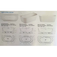 Oceano Bath Tub 1700 x 750 Back to Wall Center Sanitary Grade Acrylic ECO ECF1775BTW
