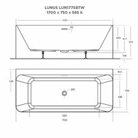 Oceano Bath Tub 1700 x 750 Back to Wall Sanitary Grade Acrylic Lunus LUN1775BTW