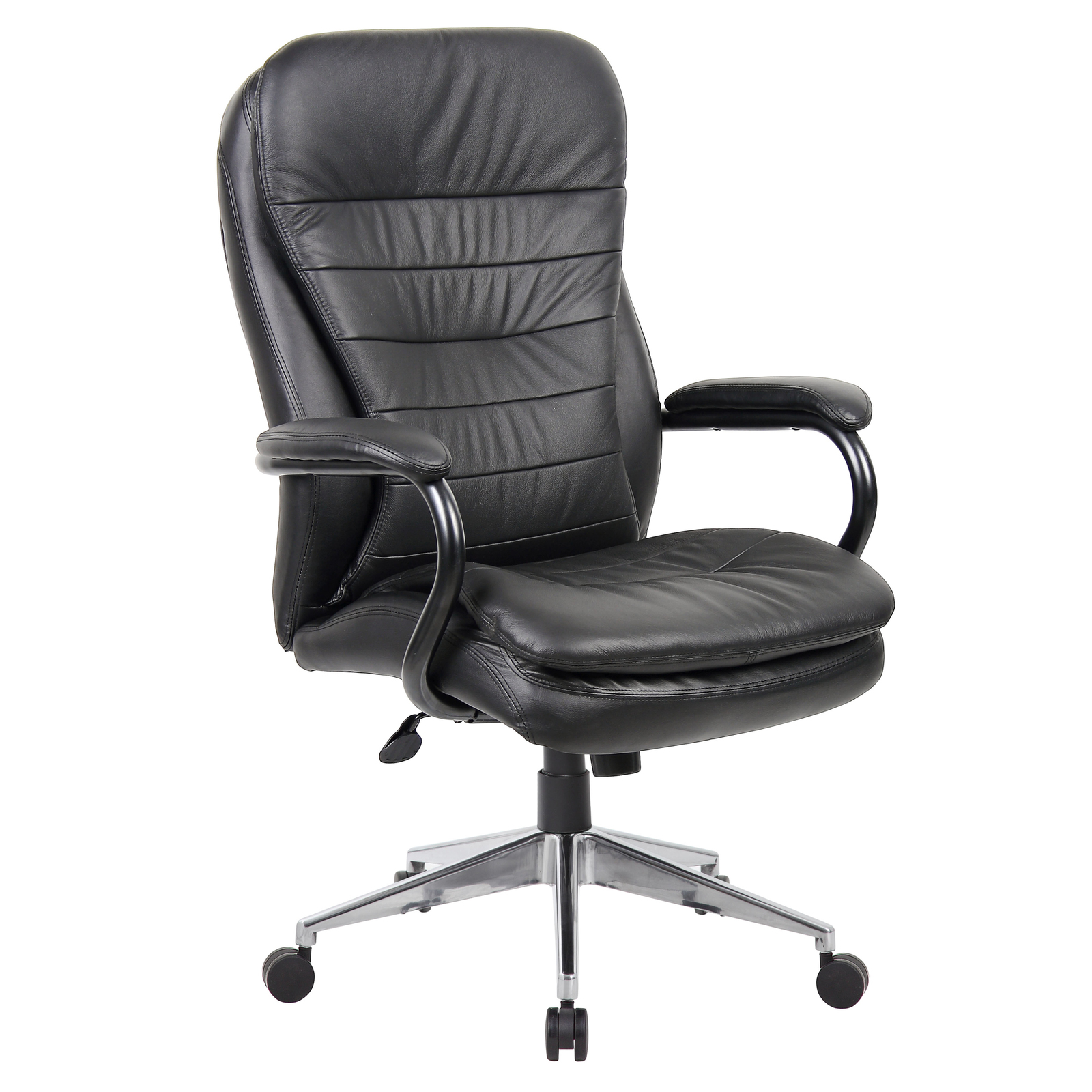 Office Chair Leather High Back With Arms Pillow Top Cushioning Furniture Seating Titan Black YS05H
